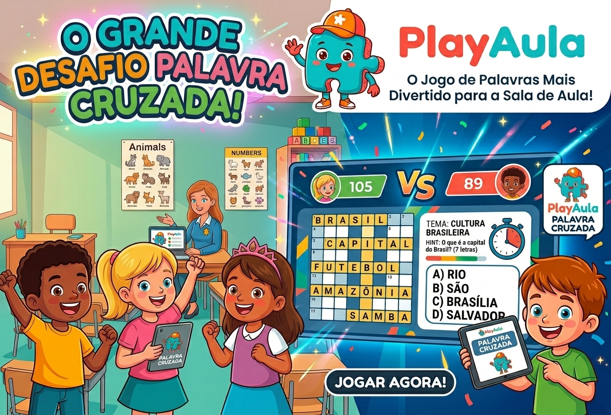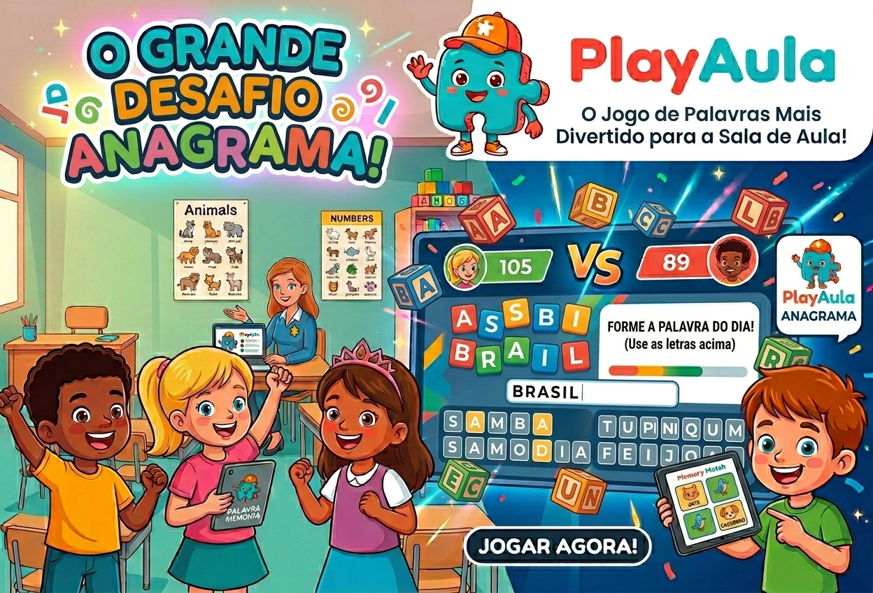 Quiz para revisão; memória para foco; cruzadinha para colaboração; anagrama para ortografia sob tempo.